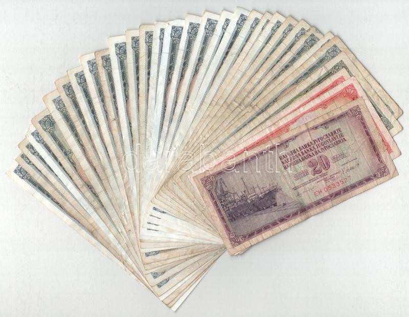 Leírás: Jugoszlávia 1965. 100D + 1978. 1000D (8db) + 1981. 20D + 1981. 500D + 1981. 1000D (21db) + 1986. 100D T:F,VG