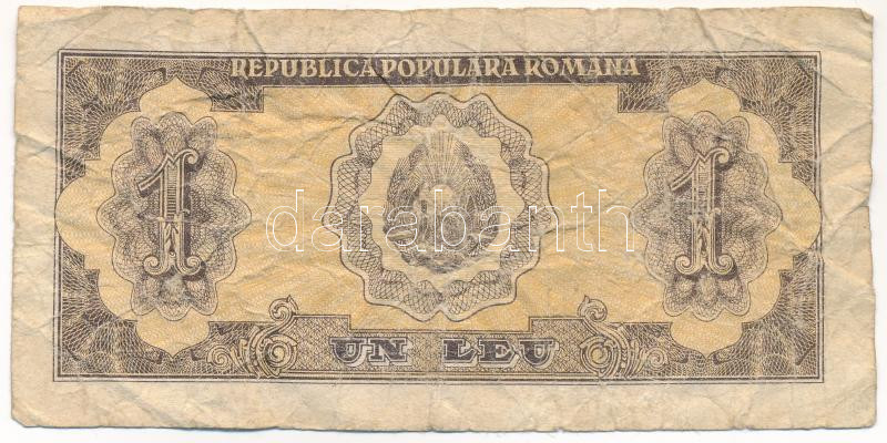 Románia 1952. 1L T:VG Romania 1952. 1 Leu C:VG