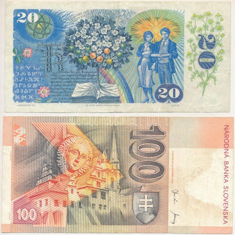 Leírás: Szlovákia 1993. (1988) 20K csehszlovák bankjegy szlovák bélyeggel felülbélyegezve + 2001. 100K T:F