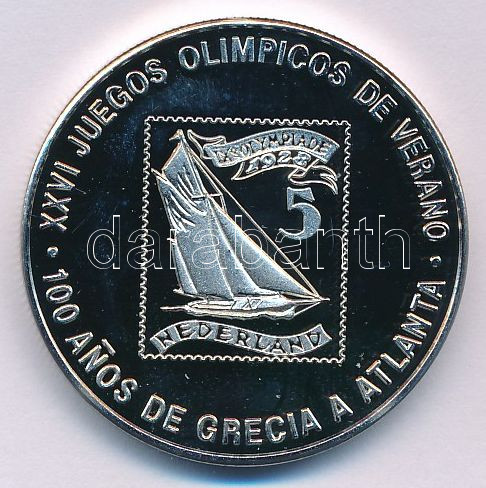 Leírás: Egyenlítői Guinea 1998. 1000Fr Cu-Ni "5 Cent névértékű holland olimpiai bélyeg" T:PP