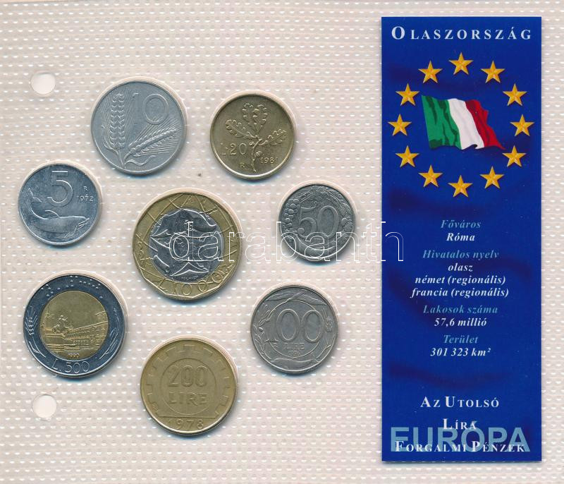 Leírás: Olaszország 1953-1997. 5L-1000L (8xklf) "Európa utolsó pénzei" vákuumcsomagolt forgalmi összeállítás T:UNC-VF