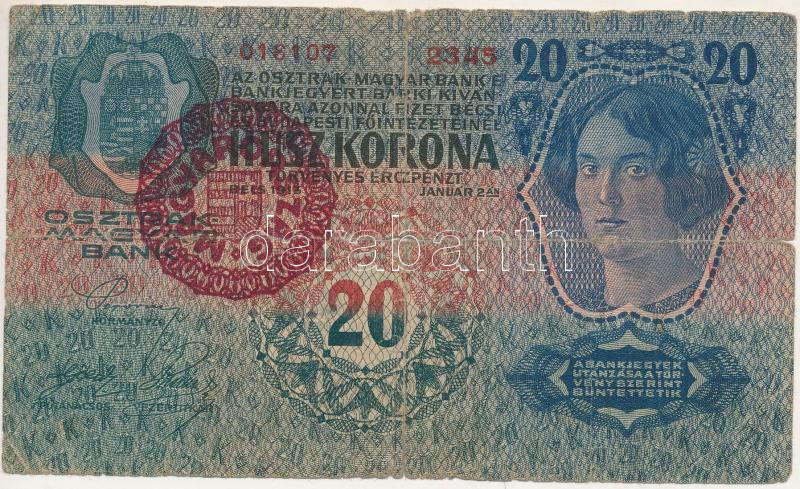 1913. 20K piros "MAGYARORSZÁG" felülbélyegzéssel T:VG szakad... https://www.darabanth.com/hu/469-Gyorsarveres/469.0/Numizmatika/Magyar-bankjegyek~2000008/1913-20K-piros-MAGYARORSZAG-felulbelyegzessel-TVG-szakadasok~II3171653