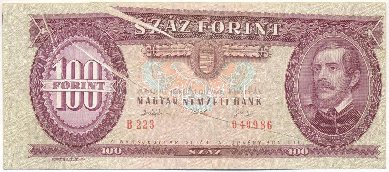 Leírás: 1993. 100Ft "B 223 049986" eltolódott nyomat, az előlapon látványos nyomdahibákkal T:F Adamo F38