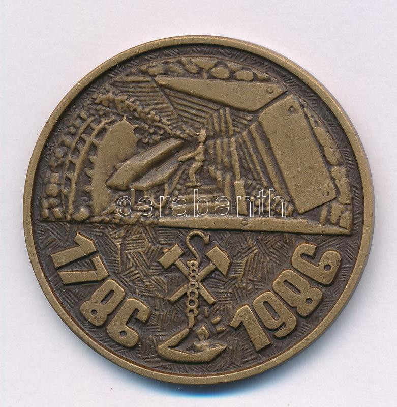 Leírás: 1986. "200 éves a borsodi szénbányászat / 1786-1986" kétoldalas bronz emlékérem (42,5mm) T:UNC