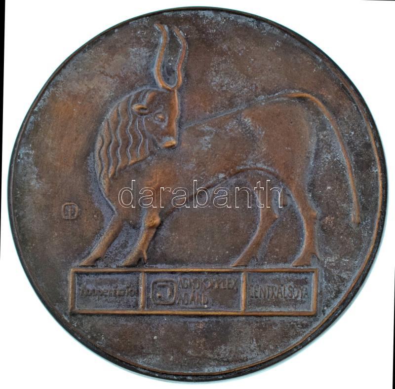 Leírás: 1987. "Agrokomplex Agárd Central Soya Kooperáció - 1987. augusztus 19." kétoldalas bronz plakett, eredeti dísztokban (122mm) T:AU