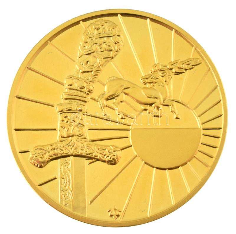 Leírás: 1993. "Atilla Isten Kardja Ősbemutató 1993. Aug. 20." aranyozott fém emlékérem (42,5mm) T:UNC