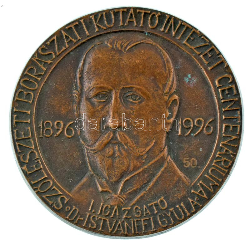 1996. "Szőlészeti Borászati Kutató Intézet Centenáriuma - I. igaz... https://www.darabanth.com/hu/469-Gyorsarveres/469.0/Numizmatika/Magyar-emlekveretek-plakettek~2000011/1996-Szoleszeti-Boraszati-Kutato-Intezet-Centenariuma-I-igazgato-Dr-Istvanffi-Gyula-~II3172057
