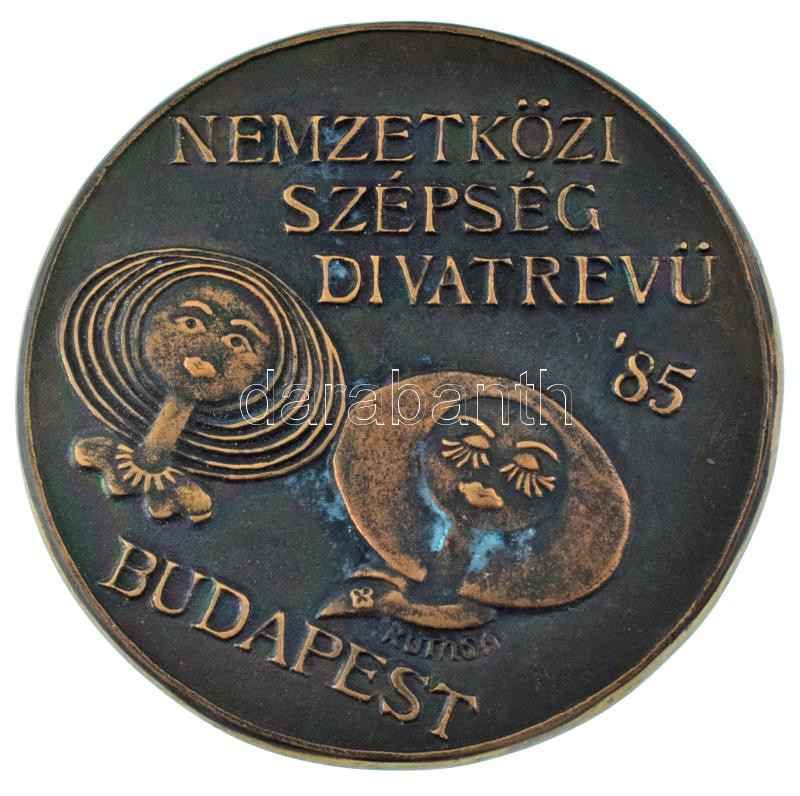 Leírás: Kutas Ágnes (1966-) 1985. "Nemzetközi Szépség Divatrevü - Budapest" egyoldalas öntött bronz emlékérem, eredeti tokban (84mm) T:UNC patina