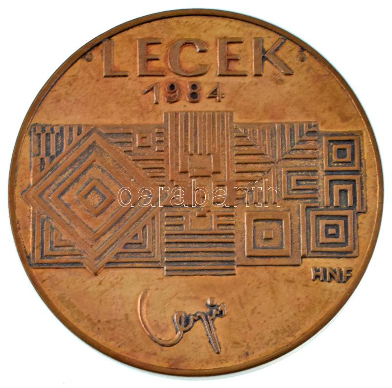 Leírás: Lapis András (1942-) 1984. "Lecek - HNF / Vasarely" kétoldalas bronz emlékérem, tokban (42,5mm) T:AU