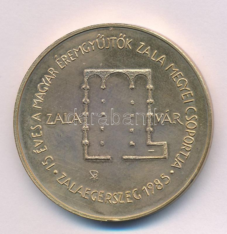 Szabolcs Péter (1942-) 1985. "A szláv írásbeliség megteremtői Pannóniai tevékenységének emlékére / 15 éves a magyar éremgyűjtők Zala megyei csoportja,1985. Zalaegerszeg - Zala vár" aranyozott bronz emlékérem (42,5mm) T:AU ph