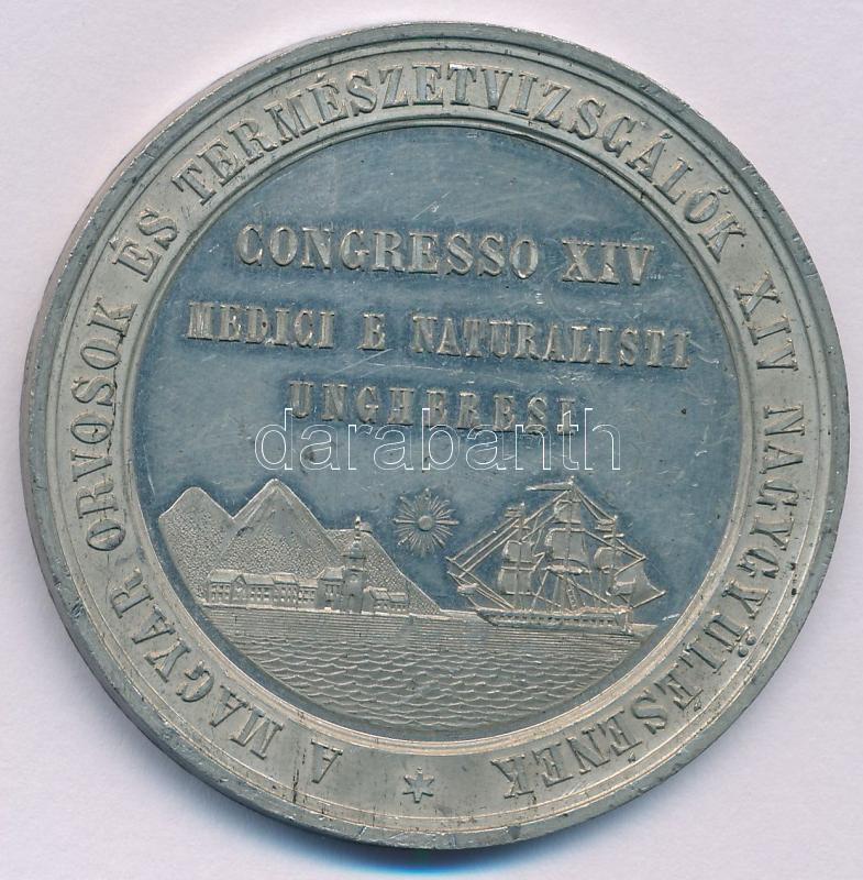 Hungary 1869. "XIVth Congress of Hungarian Doctors and Naturalists, Fiume, 1869" Sn commemorative medallion. Sign.: Wenzel Seidan (50mm) C:AU,XF small edge error