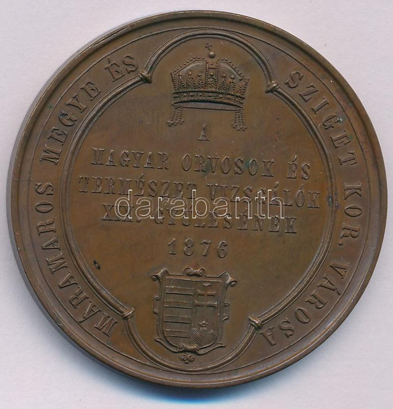 Hungary 1876. "Maramure? County and Sighetu Marmatei / VIIIth General Assembly of the Hungarian Doctors and Naturalists" bronze commemorative medallion (45mm) C:AU,XF