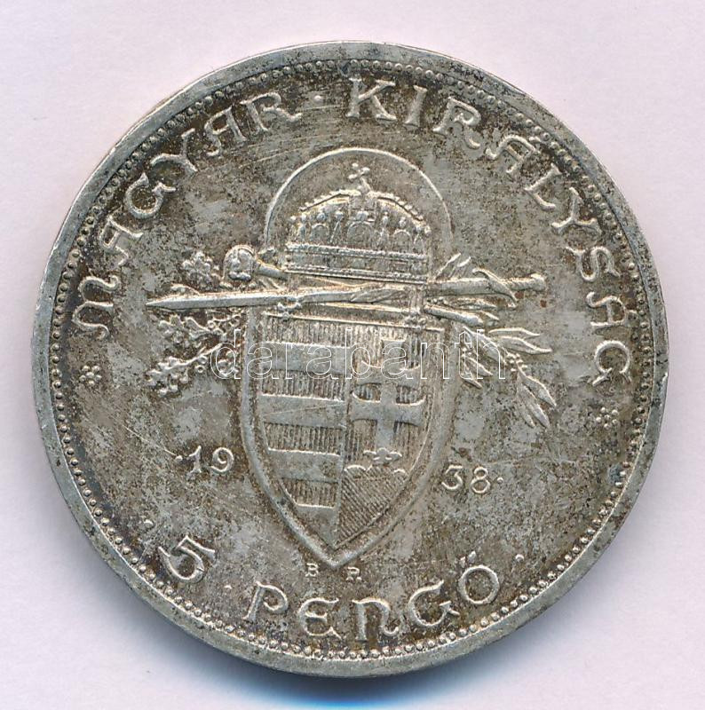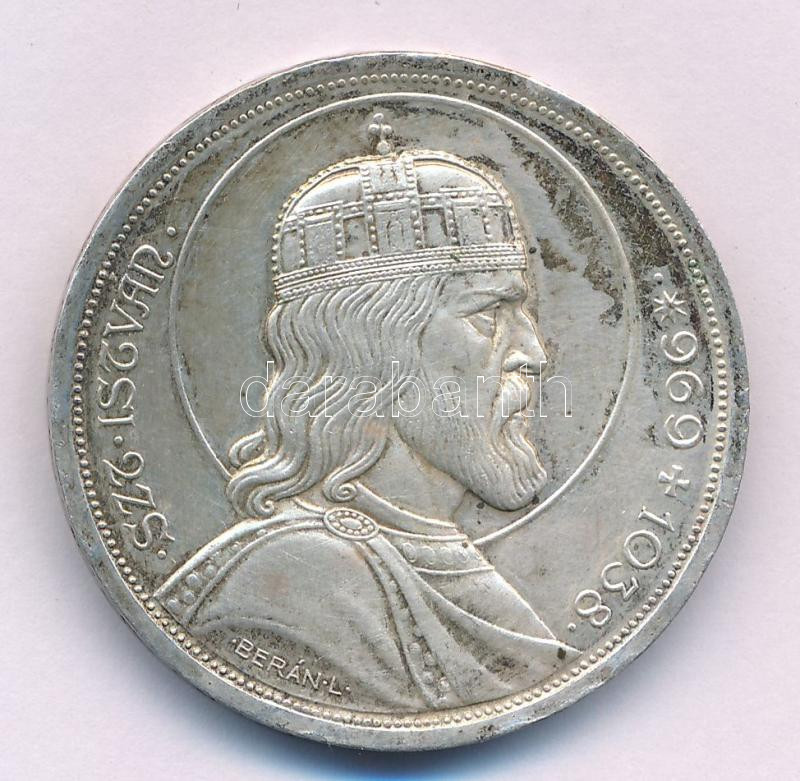 Leírás: 1938. 5P Ag "Szent István" T:AU patina Adamo P8.1