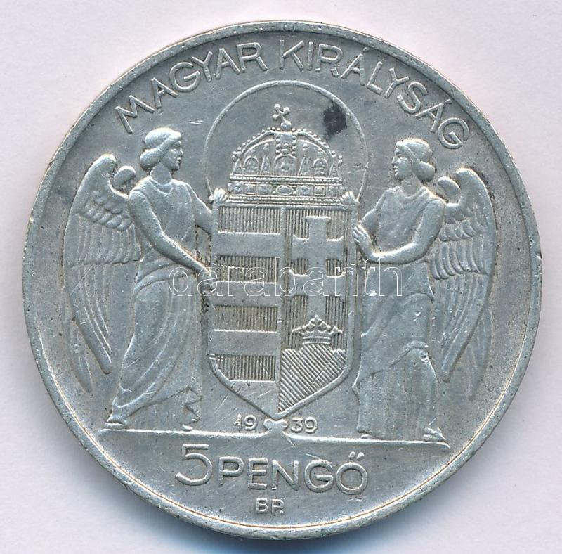 Leírás: 1939. 5P Ag "Horthy balra" T:XF patina Adamo P8.2