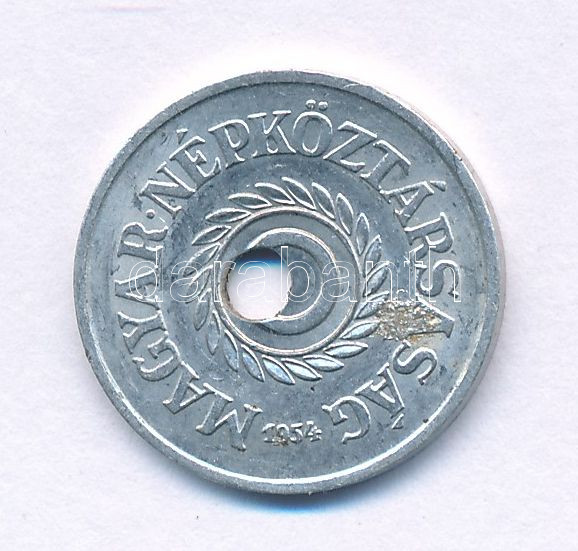 1954. 2f Al technológiai hibás veret (látványosan félrecsúszott lyukas... https://www.darabanth.com/hu/469-Gyorsarveres/469.0/Numizmatika/Magyar-es-magyar-verdejelu-fem-es-ezustpenzek~2000009/1954-2f-Al-technologiai-hibas-veret-latvanyosan-felrecsuszott-lyukasztas-TXF-Adamo-F11~II3174458