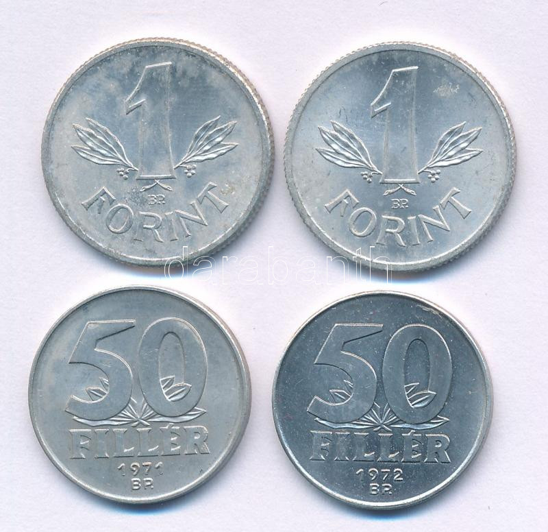 Adamo ... https://www.darabanth.com/hu/469-Gyorsarveres/469.0/Numizmatika/Magyar-es-magyar-verdejelu-fem-es-ezustpenzek~2000009/1971-1972-50f-1Ft-Al-4xklf-mindegyik-ritkabb-evszam-TAU-XF-Adamo-F52-F63~II3174402