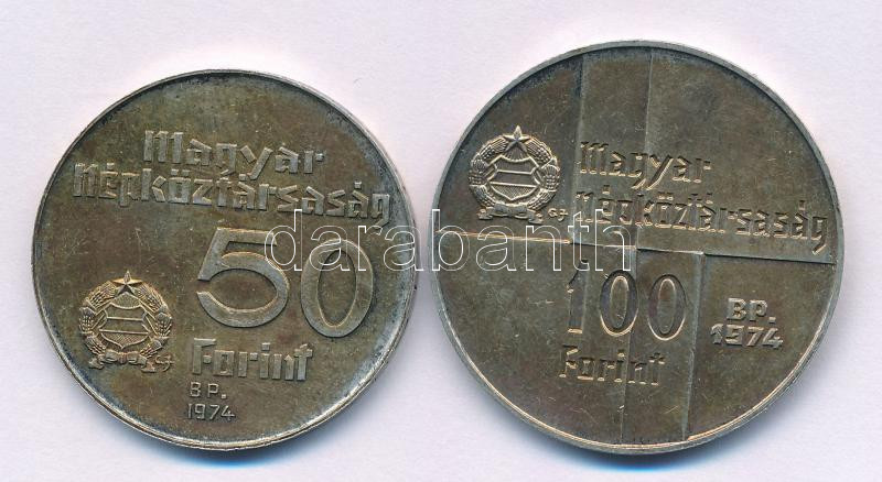 Leírás: 1974. 50Ft Ag + 100Ft Ag "50 éves a Magyar Nemzeti Bank" érmepár T:UNC,AU patina