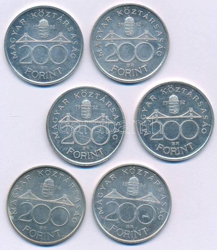 1992. 200Ft Ag "MNB" (4x) + 1994. 200Ft Ag "Deák" ... https://www.darabanth.com/hu/469-Gyorsarveres/469.0/Numizmatika/Magyar-es-magyar-verdejelu-fem-es-ezustpenzek~2000009/1992-200Ft-Ag-MNB-4x-plus-1994-200Ft-Ag-Deak-2x-TAU-XF~II3114004