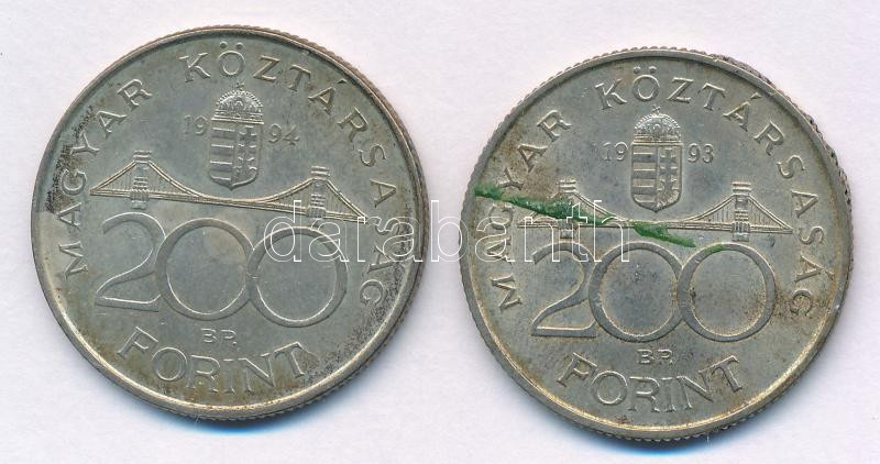 Leírás: 1993. 200Ft Ag "MNB" + 1994. 200Ft Ag "Deák" T:AU,XF patina Adamo F13, F13.1