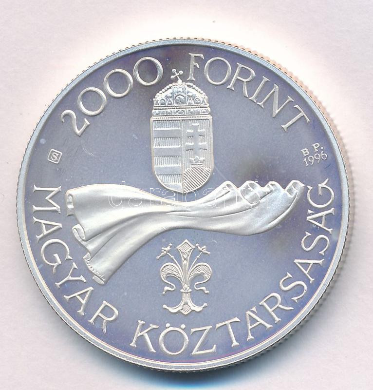 ... https://www.darabanth.com/hu/469-Gyorsarveres/469.0/Numizmatika/Magyar-es-magyar-verdejelu-fem-es-ezustpenzek~2000009/1996-2000Ft-Ag-Otveneves-a-Forint-TUNC-eredetileg-PP--Adamo-EM144~II3170458