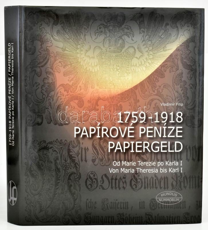 Vladimír Filip: 1759-1918. Papírové peníze od Marie Terezie po Karla I. - Papiergeld von Maria Theresia bis Karl I. (Papírpénzek Mária Teréziától I. Károlyig) Brno, 2005. Mundus Nummorum. színes képmellékletekkel, 320 p. Kiadói kartonált keménykötésben, papír védőborítóval. Újszerű állapotban