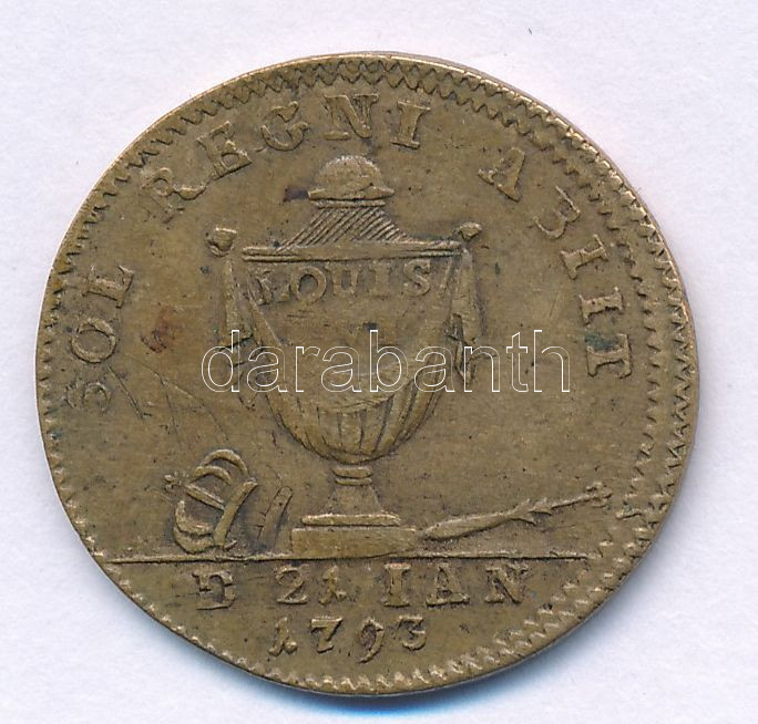 France 1793. "Louis XVI / Sol Regni Abiit" brass token (25mm) C:XF,VF