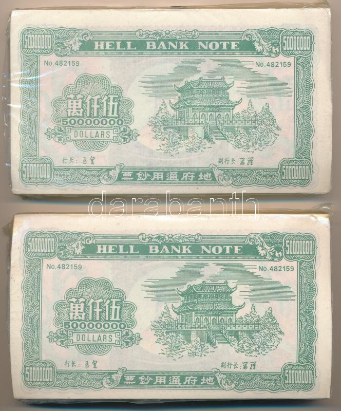 China ND Hell banknotes 50.000.000 (~120-150x) in original, slightly damaged packaging (2x) C:UNC,AU