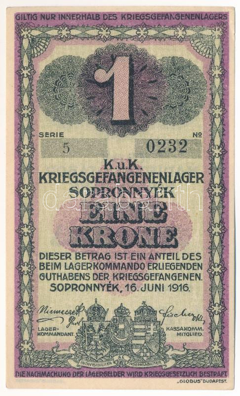 Sopronnyék / hadifogolytábor 1916. június 16. 1K arab sorozat- és sors... https://www.darabanth.com/hu/469-Gyorsarveres/469.0/Numizmatika/Papir-es-fem-szuksegpenzek~2000007/Sopronnyek-hadifogolytabor-1916-junius-16-1K-arab-sorozat-es-sorszammal-TAU-kis-saroktor~II3170530