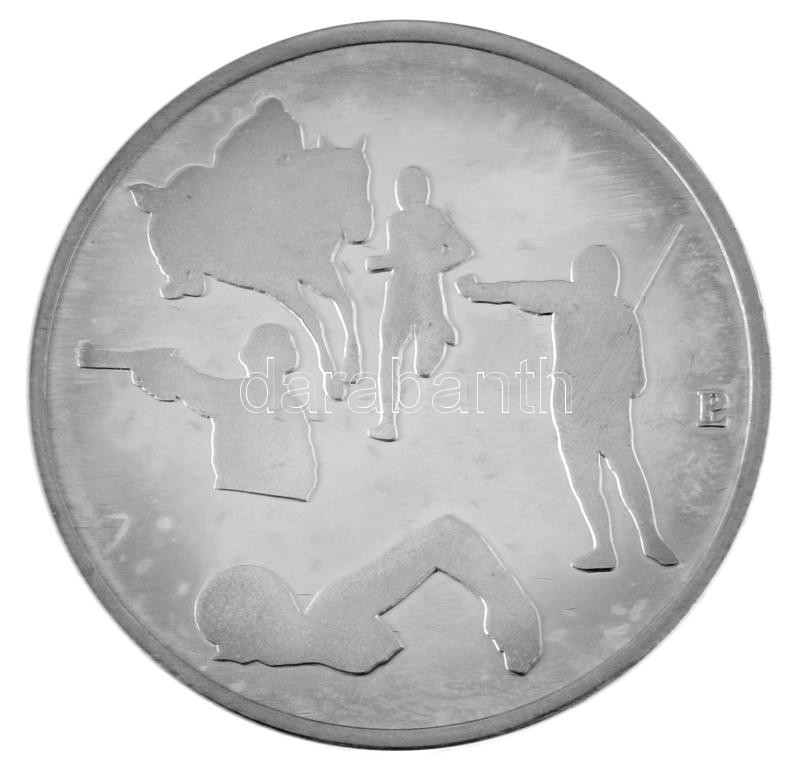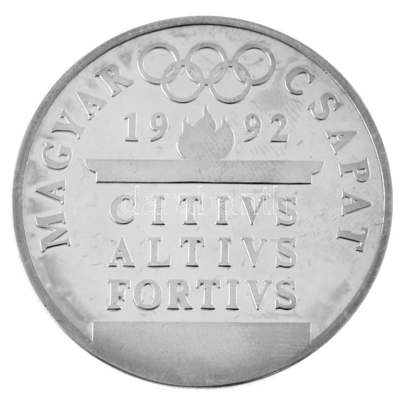 1990. "Magyar Csapat 1992 - CITIVS, ALTIVS, FORTIVS / Öttusa" a Barcelonában rendezett nyári Olimpia alkalmából készült, jelzetlen Ag emlékérem kapszulában, eredeti dísztokban. Szign.: Papp László (31,73g/0,925/42,5mm) T:PP patina, sérült tok