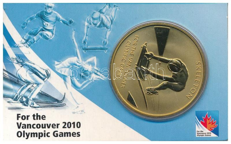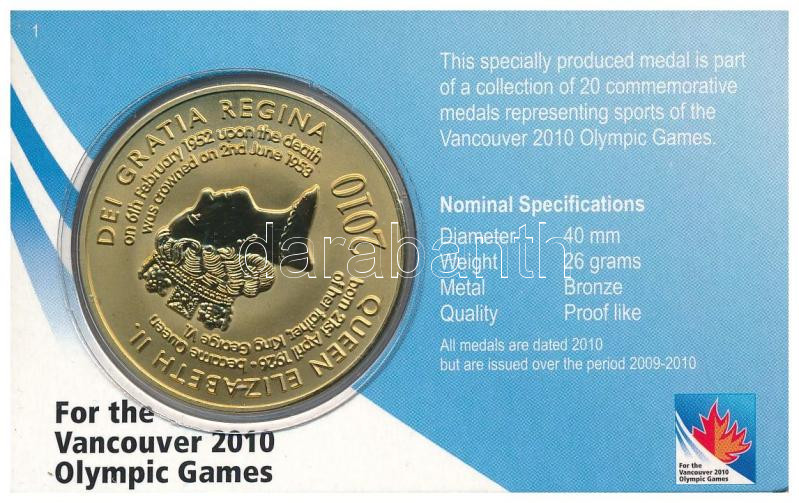 Kanada 2010. "XXI. Téli Olimpia, Vancouver - Szkeleton" kétoldalas bronz emlékérem eredeti, "2010-es Vancouveri Téli Olimpiai Játékok" karton díszlapon (40mm) T:P