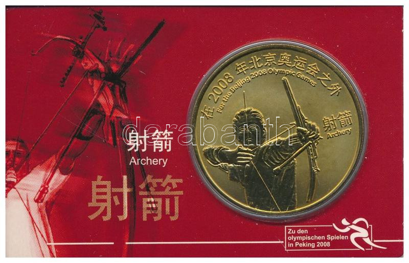 China 2008. "2008 Summer Olympics, Beijing - Archery" double-sided Cu-Zn-bronze medallion in original, "Zu den Olympische Spielen in Peking 2008" cardboard sheet (40mm) C:P