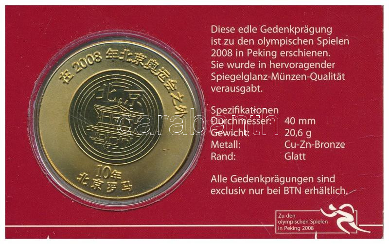 Kína 2008. "XXIX. Nyári Olimpia, Peking - Íjászat" kétoldalas Cu-Zn-bronz emlékérem eredeti, "2008-as Pekingi Nyári Olimpiai Játékok" karton díszlapon (40mm) T:P