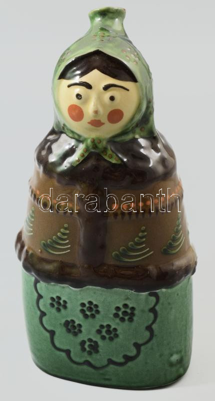 Leírás: Nőalakos butella. Jelzett, mázkopással, m: 23 cm