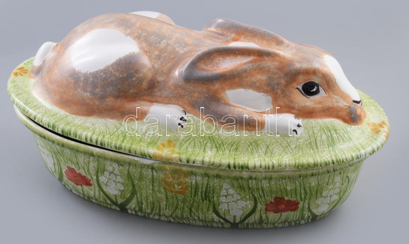 Leírás: Pataki Kerámia nyulas sültes tál, kézzel festett, jelzett, hibátlan 42 cm