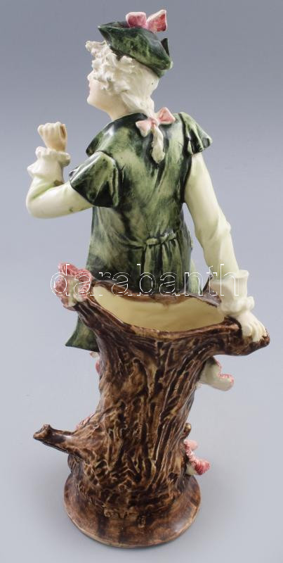 Leírás: Régi német historizáló figurás váza, mázas fajansz, kopással, m: 34 cm