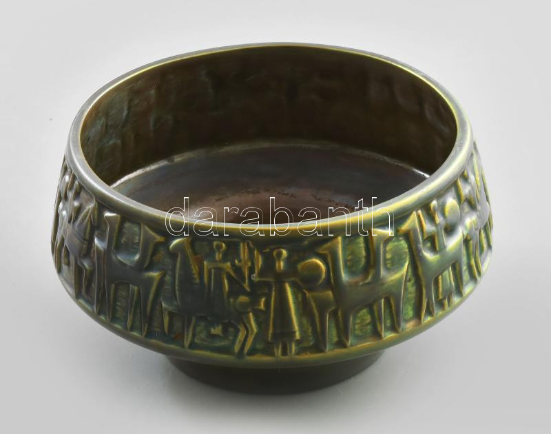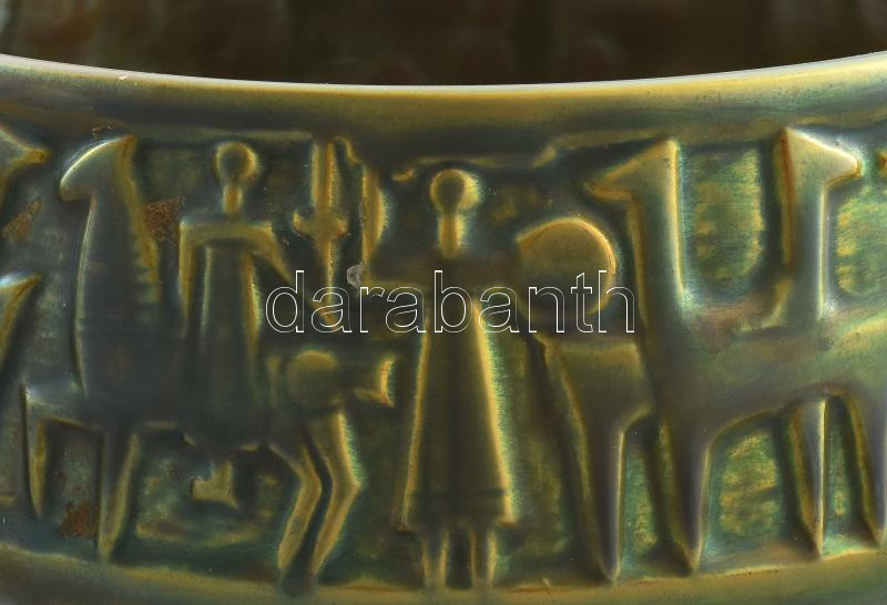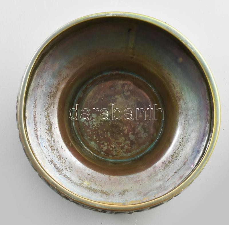 Leírás: Zsolnay eozin mázas kaspó, Terv.:Kovács István. Savmaratott eozin mázakkal fedett finomfajansz. Jelzett, hibátlan, pajzspecsétes, d: 21 cm, m: 11 cm