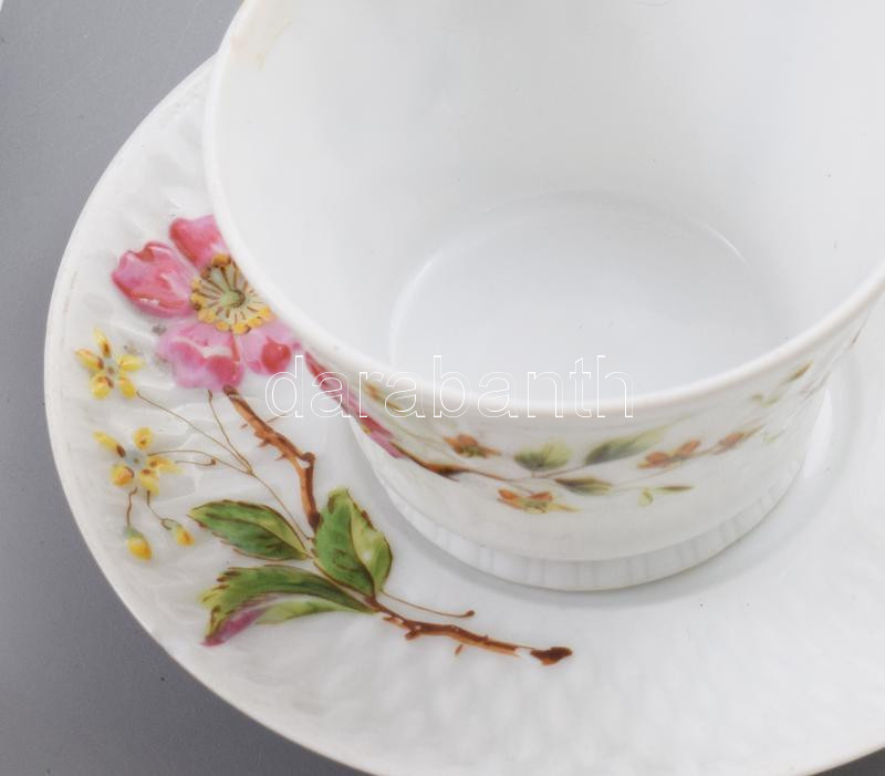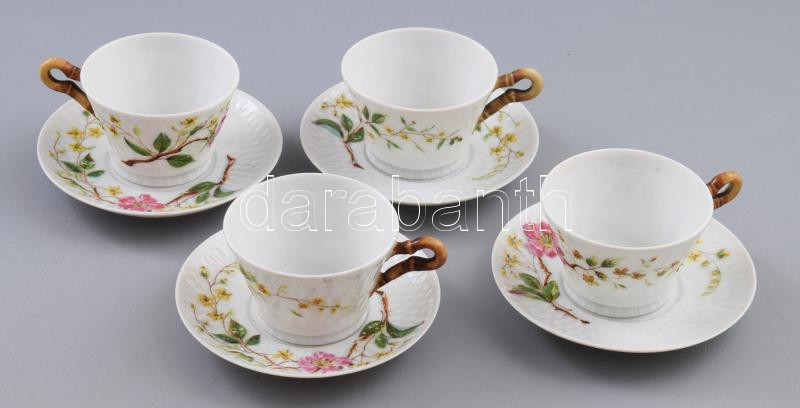 Leírás: cca 1890 Carl Knoll Carlsbad 4 darab antik csésze alátéttel. Egyik darab jelzett, közte sérüléssel, d: 10,5 cm alatt