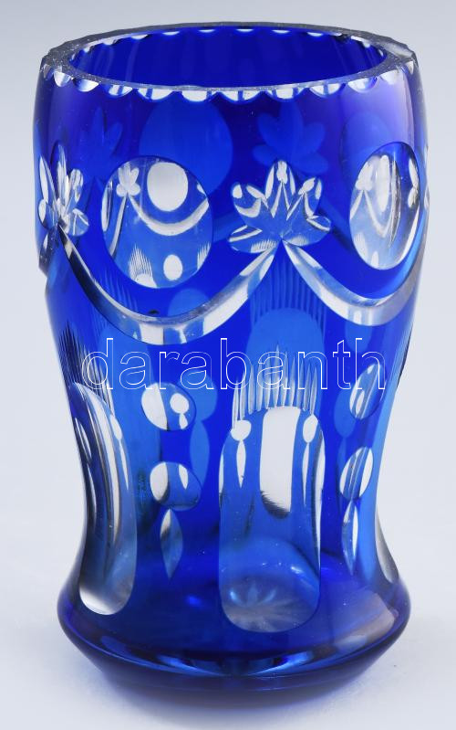 Csiszolt mintával kék váza. Jelzés nélkül, pattogzással, m: 16,5 cm https://www.darabanth.com/hu/469-Gyorsarveres/469.0/Porcelan-keramia-uveg/Uvegtargyak~500007/Csiszolt-mintaval-kek-vaza-Jelzes-nelkul-pattogzassal-m-16-5-cm~II3101444