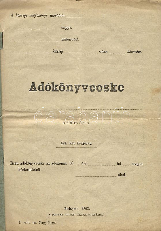 https://www.darabanth.com/hu/47-Gyorsarveres/47.0/Festmeny-mutargy-papirregiseg-egyeb/Okmanyok~133/1893-Ado-konyvecske~II94022