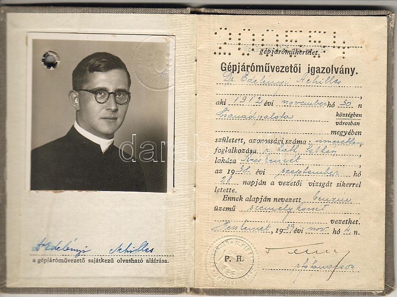 1939 Katolikus lelkész gépjárművezetői igazolványa https://www.darabanth.com/hu/47-Gyorsarveres/47.0/Festmeny-mutargy-papirregiseg-egyeb/Okmanyok~133/1939-Katolikus-lelkesz-gepjarmuvezetoi-igazolvanya~II94231