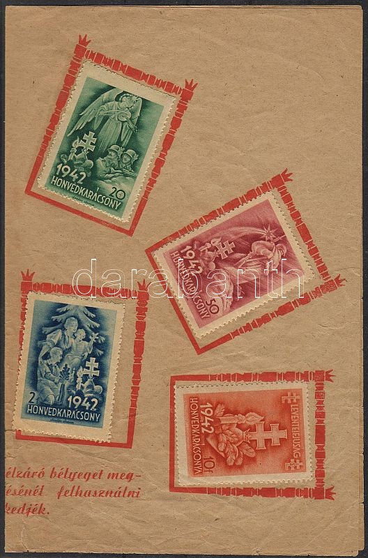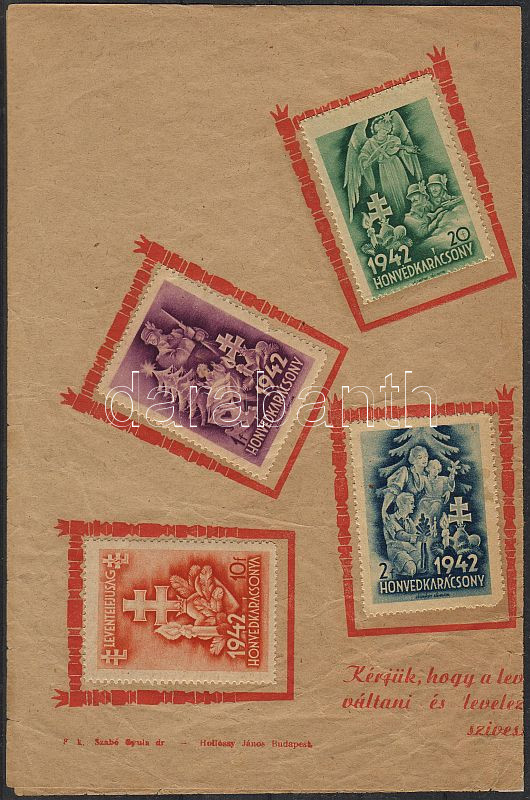 1942 8 klf Honvédkarácsony levélzáró emléklapon https://www.darabanth.com/hu/47-Gyorsarveres/47.0/Festmeny-mutargy-papirregiseg-egyeb/Parafilatalia~129/1942-8-klf-Honvedkaracsony-levelzaro-emleklapon~II94124