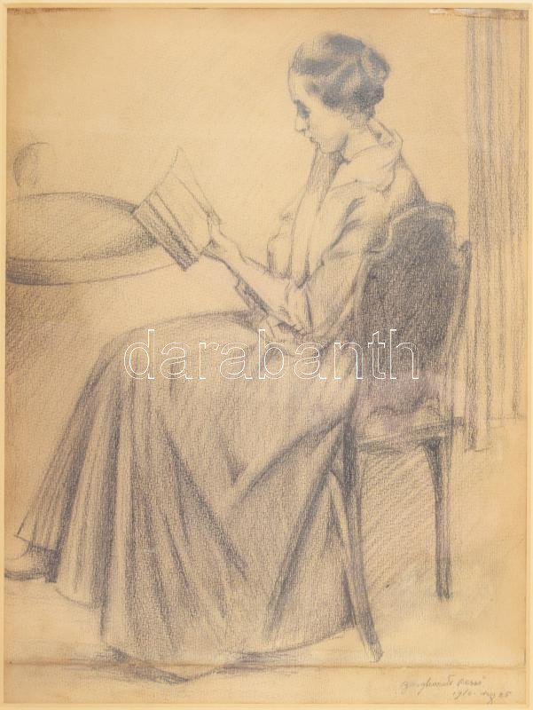 Burghardt Rezső (1884-1963): Olvasó hölgy portréja, 1916. Ceruza, papí... https://www.darabanth.com/hu/470-Gyorsarveres/470.0/Festmenyek-es-grafikak/Festmenyek-es-grafikak~500002/Burghardt-Rezso-1884-1963-Olvaso-holgy-portreja-1916-Ceruza-papir-Jelzett-Dekorativ-~II3183518
