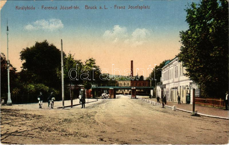 1915 Királyhida, Bruckújfalu Tábor, Brucker Lager, Bruckneudorf; Ferenc József tér, új híd az osztrák-magyar határnál / square, bridge on the Austro-Hungarian border / Franz Josefsplatz. Verlag Marie Huber (EK)