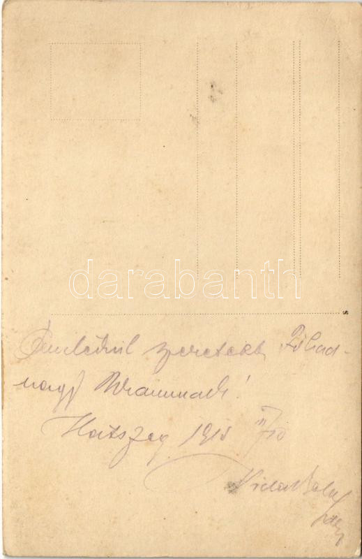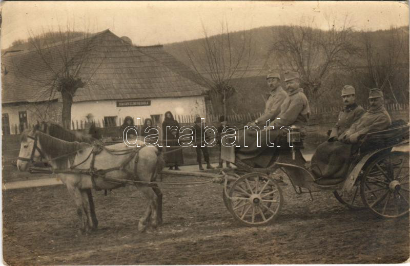Leírás: 1915 Hátszeg, Hateg; Római katolikus elemi fiú iskola, magyar katonák lovashintón / boy school, K.u.k. soldiers in a horse chariot. photo (EK)