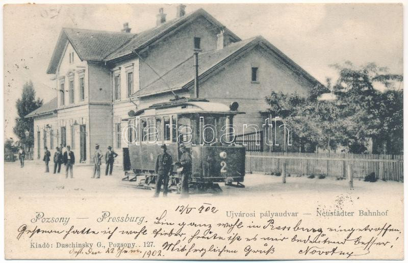 1902 Pozsony, Pressburg, Bratislava; Újvárosi pályaudvar, vasútállomás... https://www.darabanth.com/hu/470-Gyorsarveres/470.0/Kepeslapok/Felvidek~2000007/1902-Pozsony-Pressburg-Bratislava-Ujvarosi-palyaudvar-vasutallomas-villamos-Duschinsky-G~II3177231