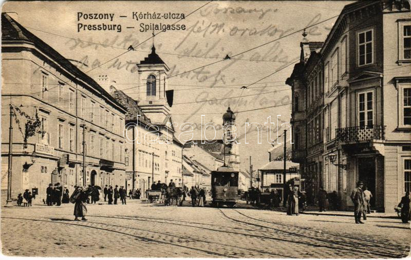 1909 Pozsony, Pressburg, Bratislava; Kórház utca, villamos, Duschinsky... https://www.darabanth.com/hu/470-Gyorsarveres/470.0/Kepeslapok/Felvidek~2000007/1909-Pozsony-Pressburg-Bratislava-Korhaz-utca-villamos-Duschinsky-uzlete-Spitalgasse-~II3177230