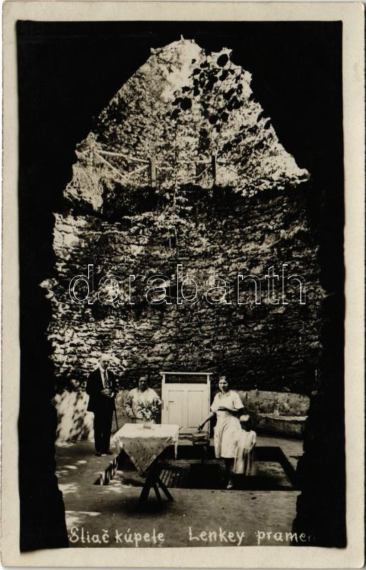 1928 Szliács, Sliac; Lenkey forrás / mineral water spring. photo https://www.darabanth.com/hu/470-Gyorsarveres/470.0/Kepeslapok/Felvidek~2000007/1928-Szliacs-Sliac-Lenkey-forras-mineral-water-spring-photo~II3183699