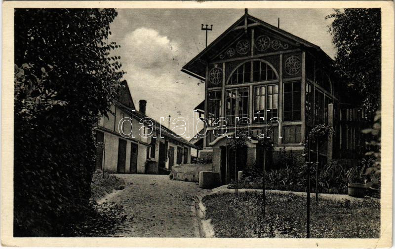 Leírás: 1936 Csíz, Csízfürdő, Kúpele Cíz; utca, nyaraló, üzlet / street view, villa, shop (EK)