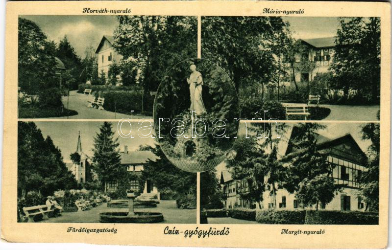 Leírás: Csíz, Csízfürdő, Kúpele Cíz; Horváth nyaraló, Mária nyaraló, Fürdőigazgatóság, Margit nyaraló / villas, spa directorate office (vágott / cut)