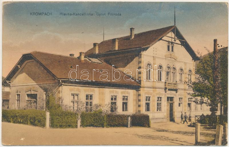 Korompa, Krompach, Krompachy (Szepes); Hlavna Kancellaria / Gyári főir... https://www.darabanth.com/hu/470-Gyorsarveres/470.0/Kepeslapok/Felvidek~2000007/Korompa-Krompach-Krompachy-Szepes-Hlavna-Kancellaria-Gyari-foiroda-S-Balkanyi-kiadasa-~II3181128